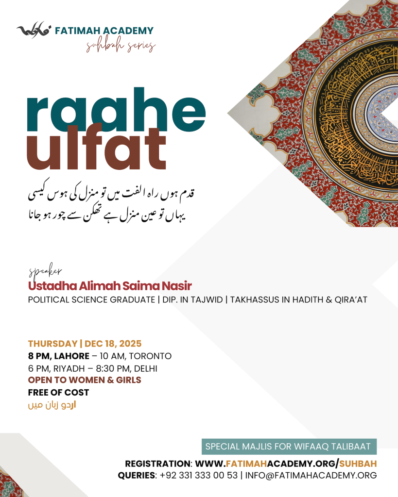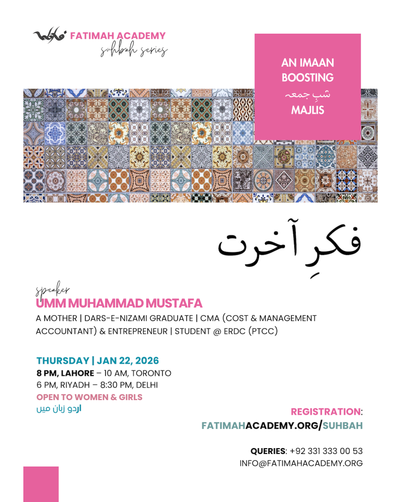 Fatimah Academy: a platform where all muslimahs from around the globe can come together to learn the deen of Allah ﷻ and His Beloved Messenger ﷺ and earn their qurb and radha, in sha Allah.